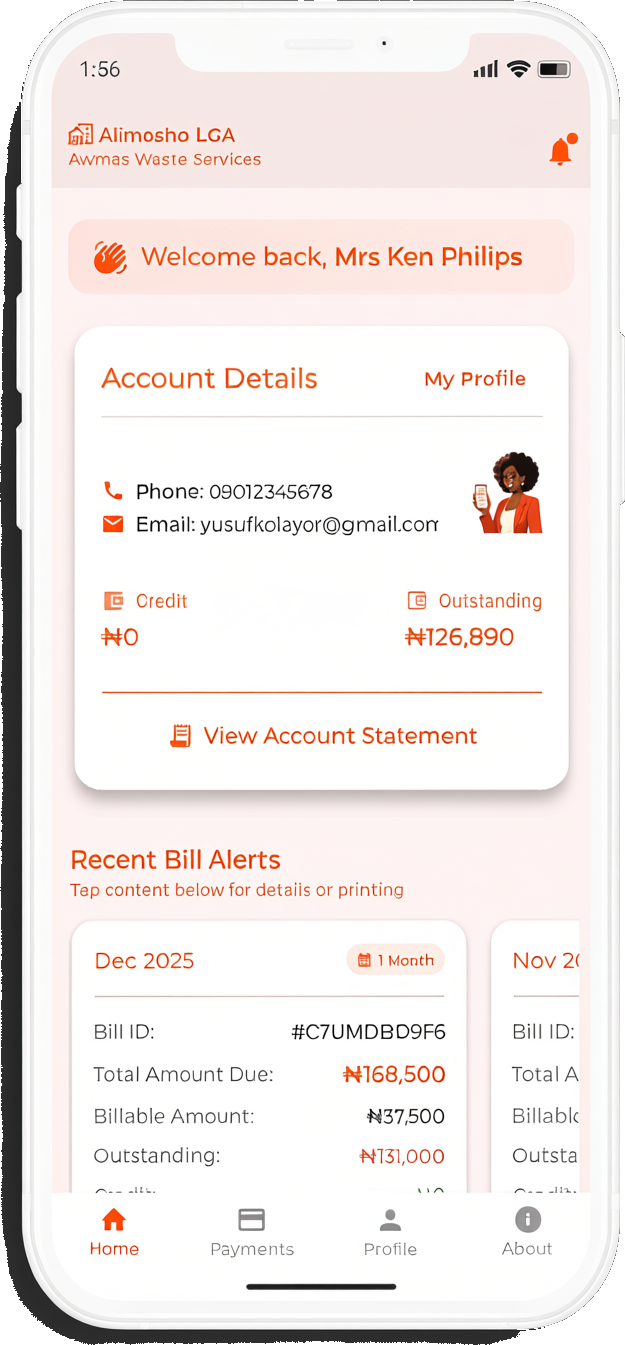 Get notified as soon as your monthly waste bill is generated and when you make new payment, Our app sends you real-time alerts to ensure you never miss and you are timely informed.